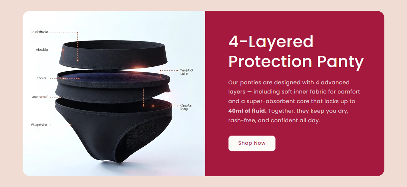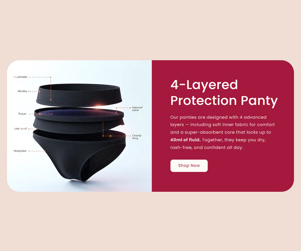 End fear. Start fearless conversations. Pantree brings you Pakistan’s first 4-layered luxury period panty—designed to give you comfort, confidence, and protection all day long. 🌸 Why You’ll Love It 4th-layer Leak Protection – Extra security...Regular price Rs.2,599.00Sale price Rs.2,599.00 Regular priceUnit price / perRs.7,000.00Sale4 layered Leak-Proof Period Panty